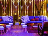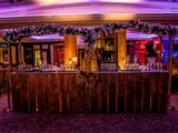 Welcome to your very own immersive Apres Ski party. Enter the event space and be greeted by a stunning wooden bar with chalet style roofs and a rustic apple crate back bar holding twinkling bottles, beer steins and candles.